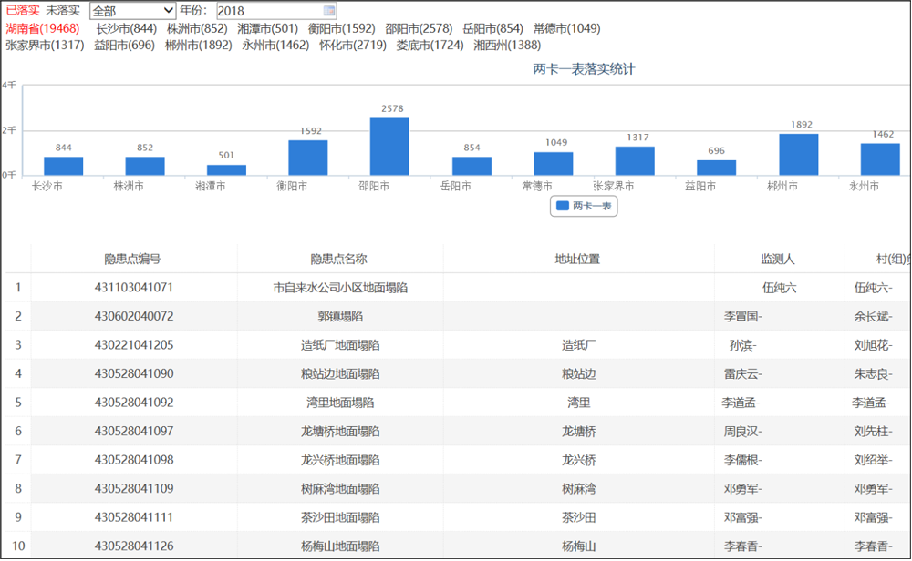 实现基于基础调查数据的宏观统计查询,全面了解地质灾害现状,包括成功避险统计、灾险情统计、隐患点信息统计等内容。